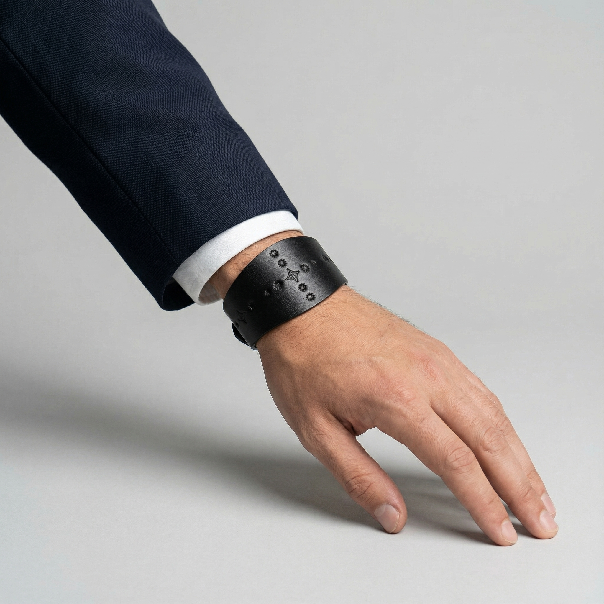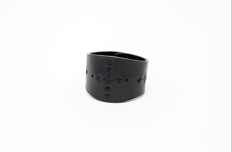 大ぶりのベルトに打刻による紋様をあしらい、尊さ、荘厳さ、神聖さを感じさせるバングルを作りました。
