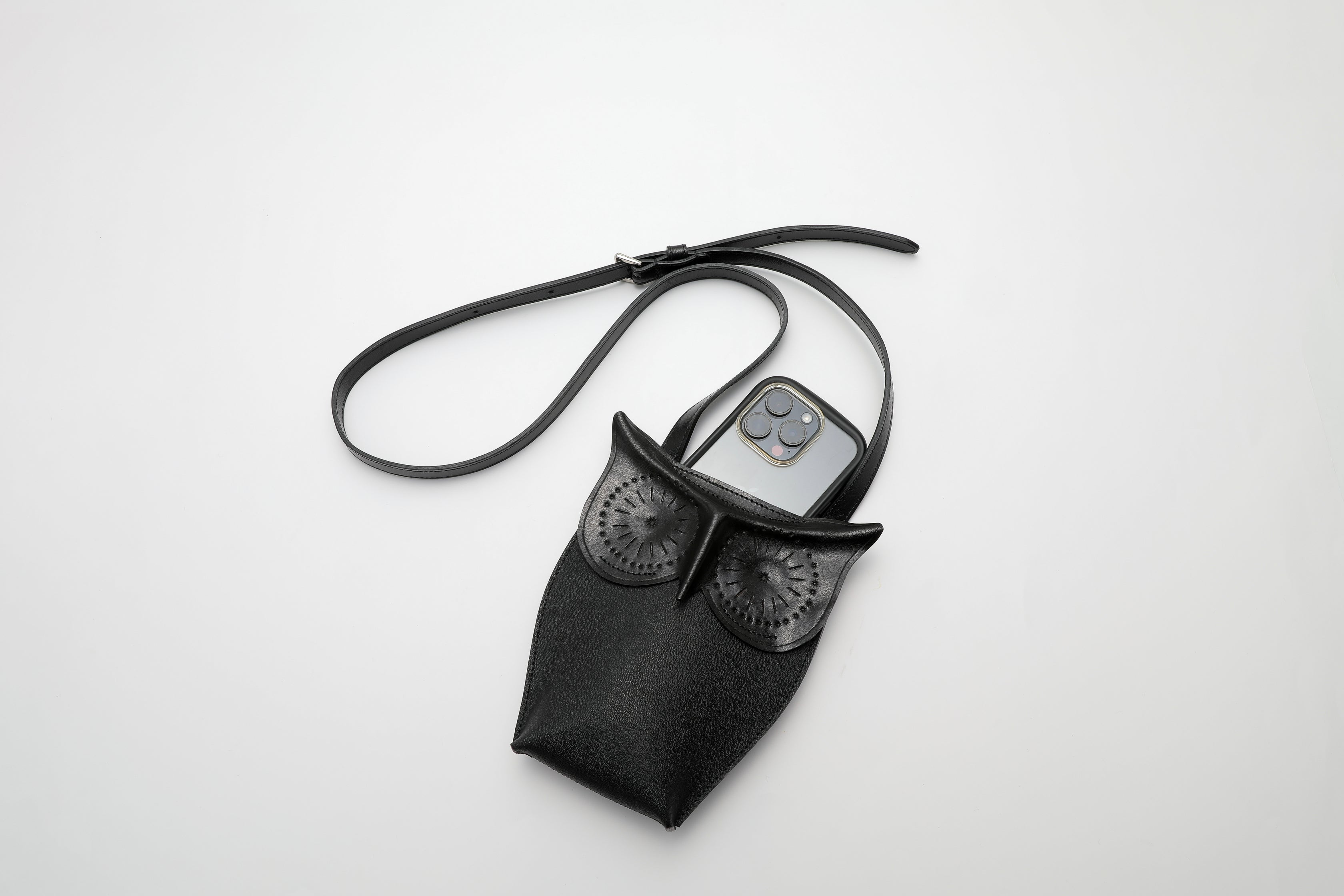 夜を見守るフクロウが、大切なものを守る、スマートフォンをも守るポーチ