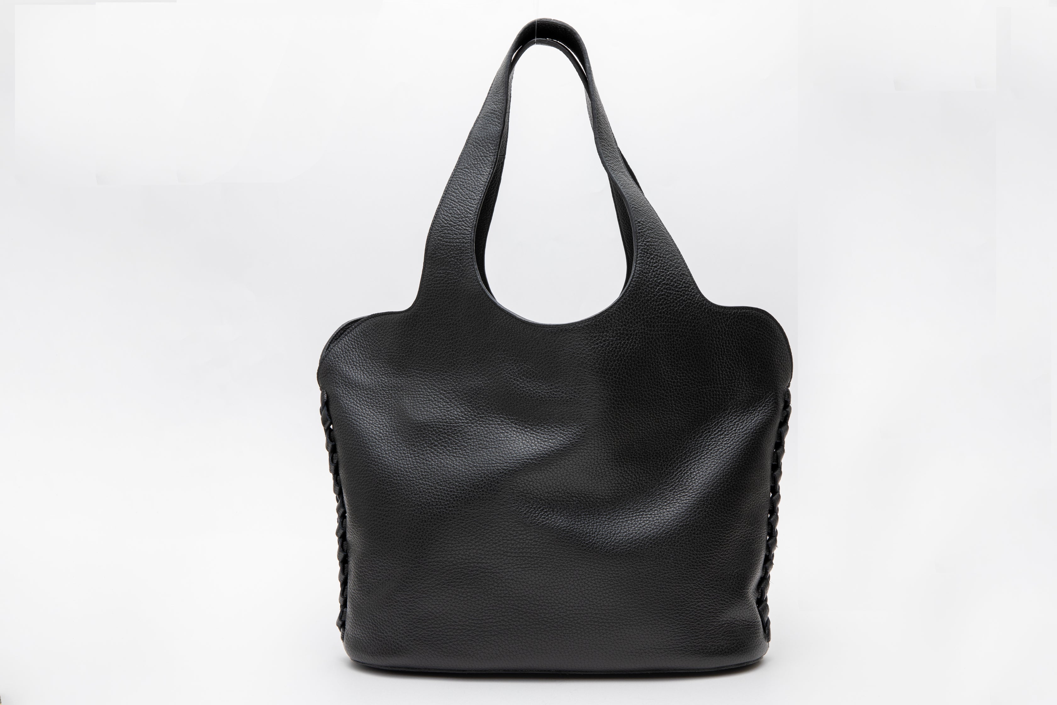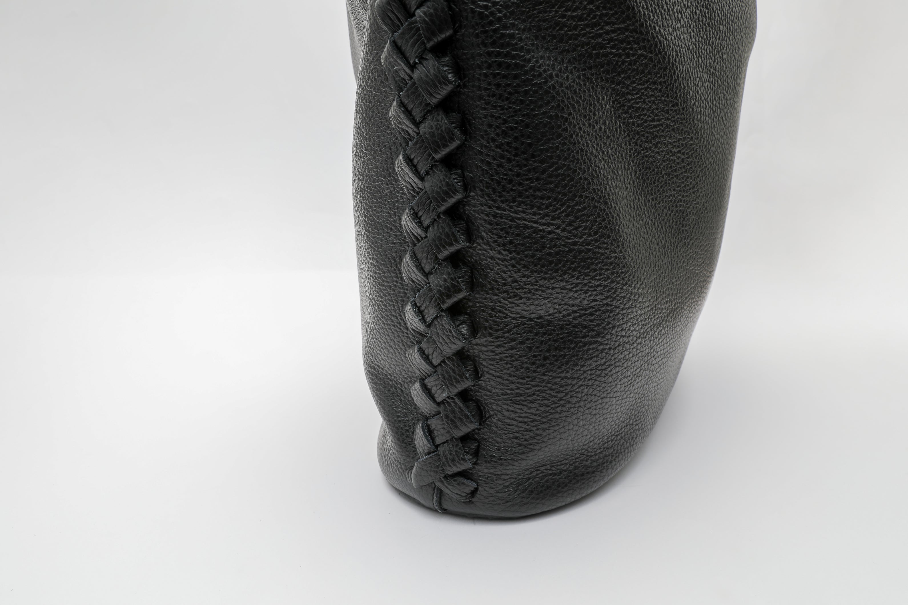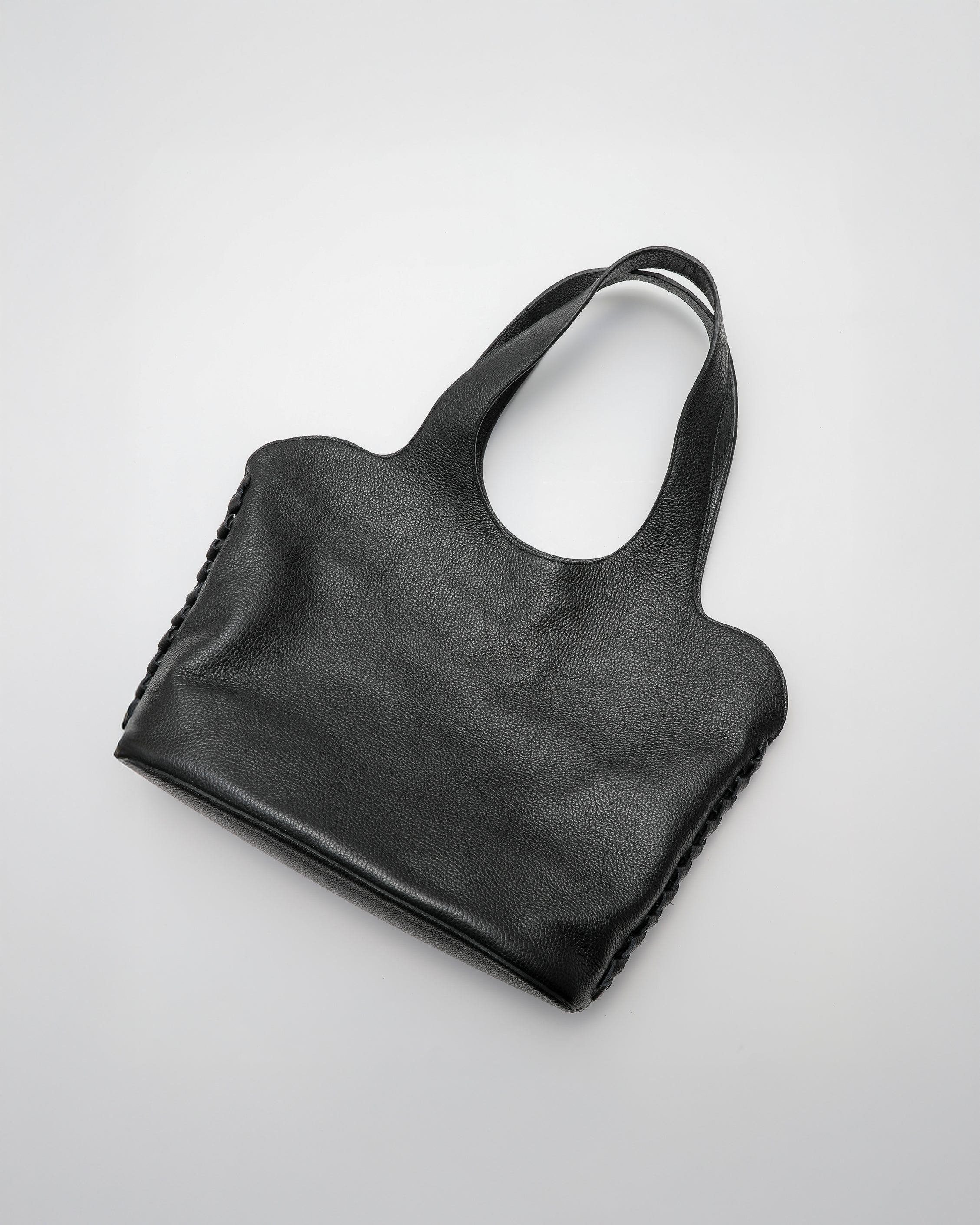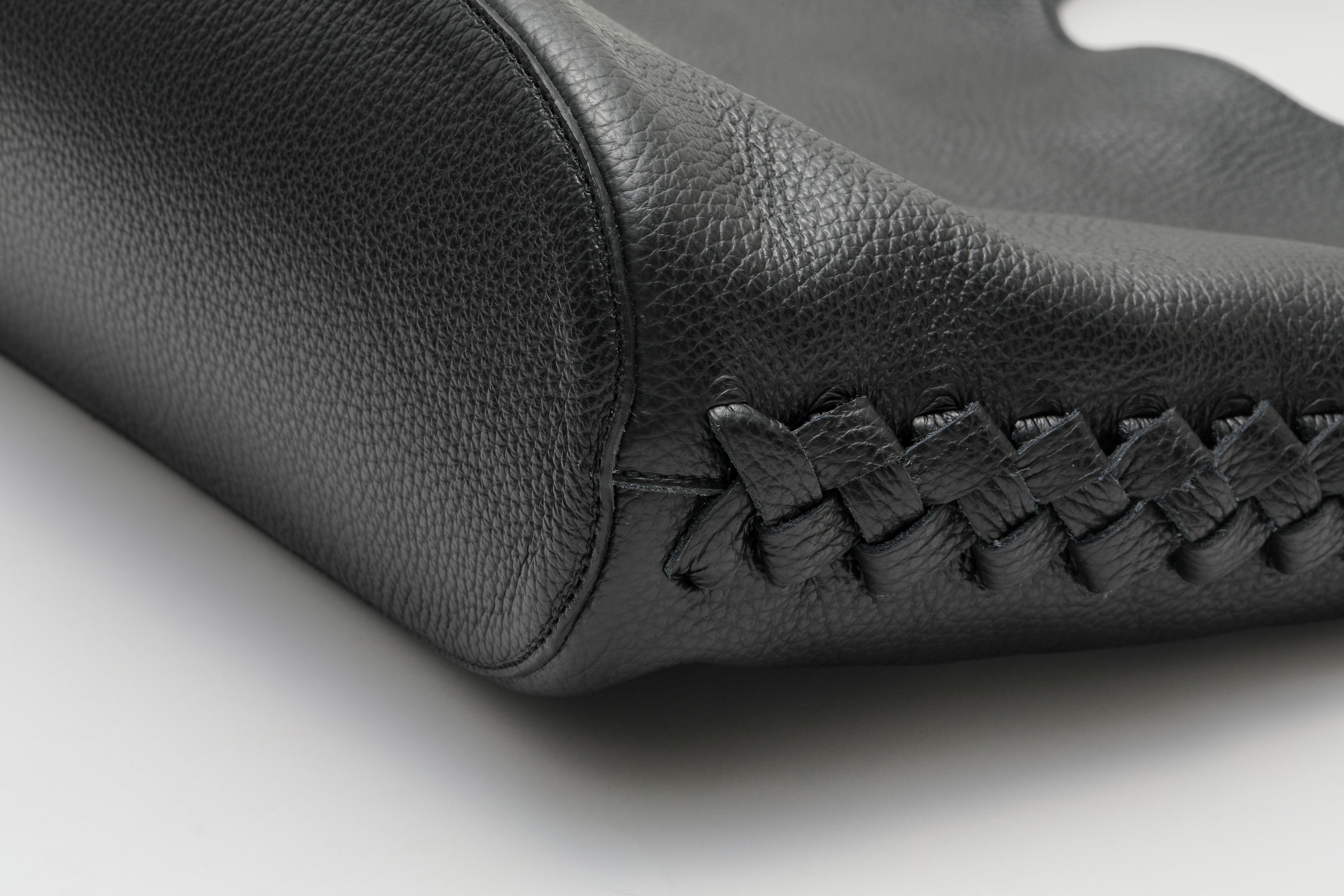 両サイドに大胆に施した革レースは、一針一針繊細な力加減で丁寧に編み、植物のツルの様に巻き上げました。この有機的なフォルムは、まるで心地よい観葉植物のようにも、少しアートのようにも見えるトートバックです。
